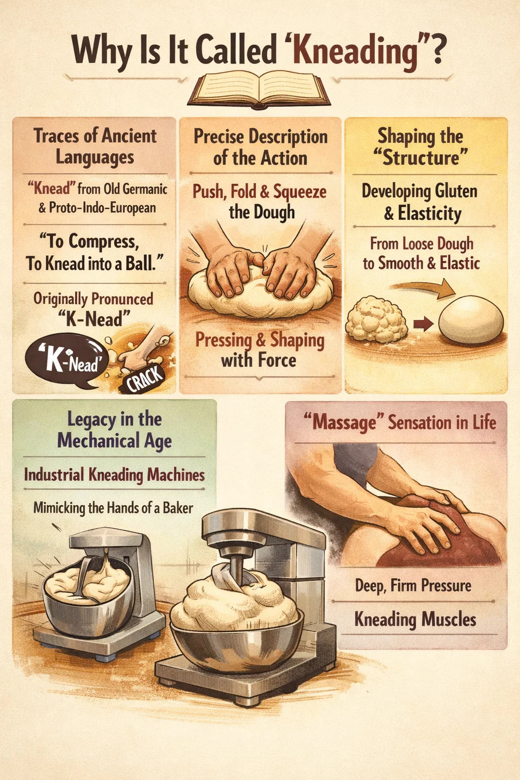 Regarding why this "rubbing and pressing" motion is called kneading, there's a history of linguistic evolution and a very vivid description of the action behind it. The word has persisted to this day because it accurately captures the essence of this type of operation.